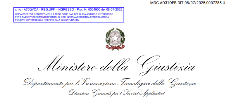 DGSIA comunica che, nell’ambito dell’attività di adeguamento dei sistemi giustizia, sono stati realizzati interventi evolutivi sul PDP (versione 5.7.1).